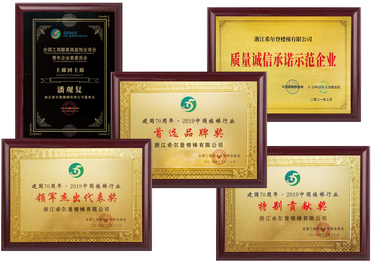在不斷提升希爾登品牌和企業(yè)實力的同時,希爾登一直熱心參與樓梯行業(yè)的健康發(fā)展;參與創(chuàng)立全國工商聯(lián)樓梯專委會并被推選為中國樓梯品牌聯(lián)盟執(zhí)行主席和樓梯專委會執(zhí)行會長;憑借在行業(yè)內(nèi)的專業(yè)地位,希爾登參與了《木質(zhì)樓梯》,《木質(zhì)樓梯安裝驗收和使用規(guī)范》,《住宅內(nèi)用樓梯》,《建筑用玻璃與金屬護(hù)欄》四個國家和行業(yè)標(biāo)準(zhǔn)的起草工作。先后榮獲“中國樓梯十大品牌”、“金木樓梯領(lǐng)軍品牌”、“中國泛家居發(fā)展中企業(yè)500強”、“中國家裝行業(yè)金鉆獎”、“金屬木質(zhì)樓梯一級資質(zhì)”等二十多個榮譽和稱號。我們幾乎參與和見證中國樓梯發(fā)展歷程中的所有重大事件。希爾登過去,現(xiàn)在和未來都是中國樓梯的標(biāo)桿企業(yè)。